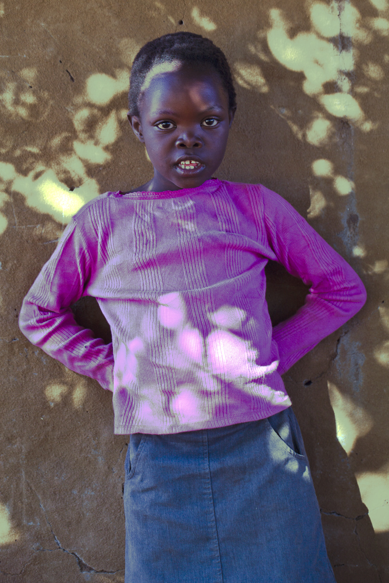 Girl in Purple Sweater at Wall - Zambian Village - 2010